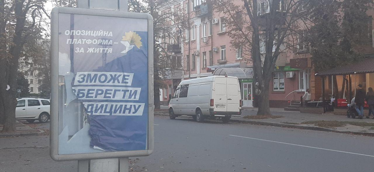 На початку тижня у Кременчуці порвали банери «Опозиційної платформи – За життя», розташовані на металевих щитах у середмісті.