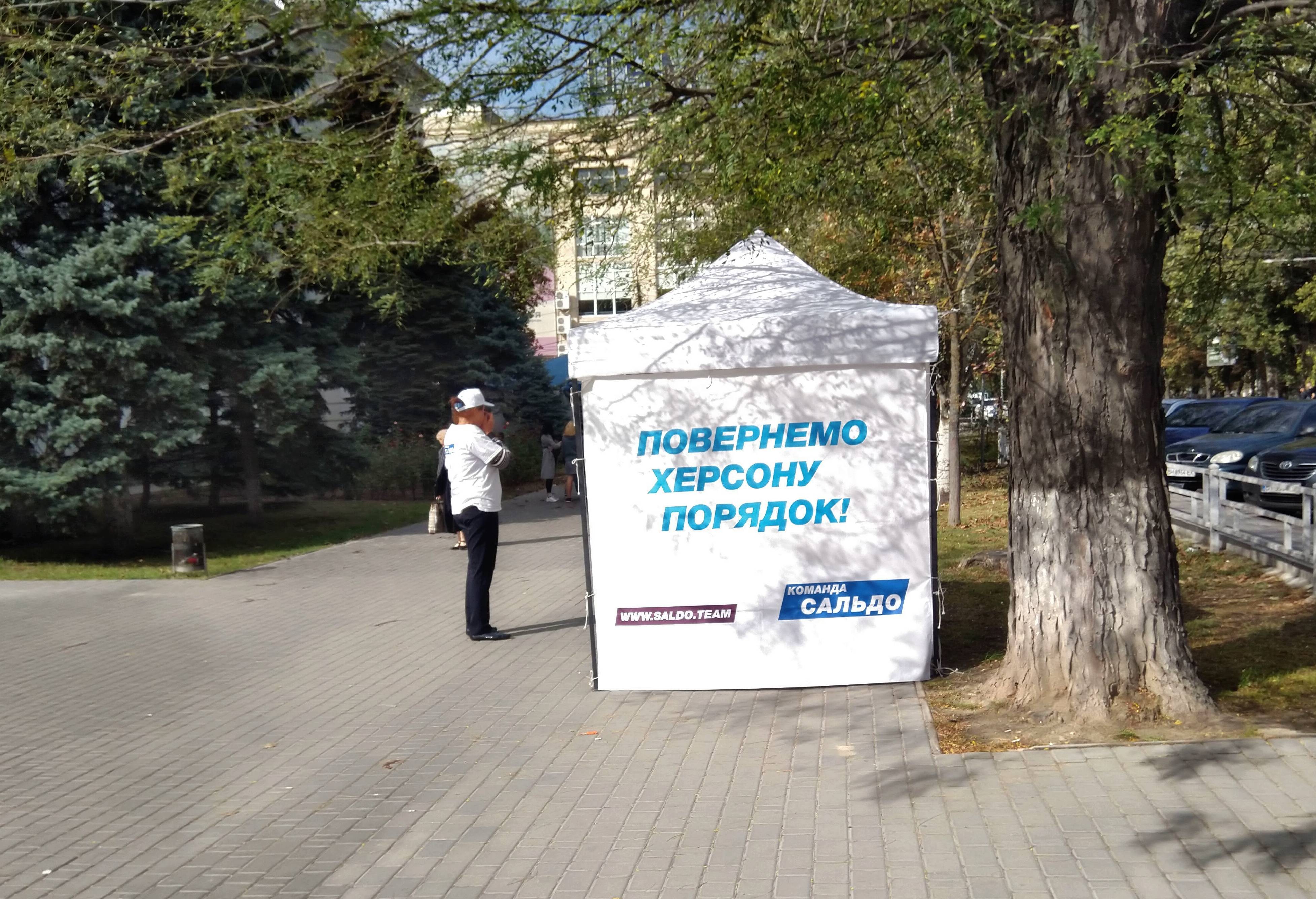 Спостерігачі ОПОРИ зафіксували у Херсоні агітаційні намети більшості місцевих організацій політичних партій, які беруть участь у місцевих виборах.