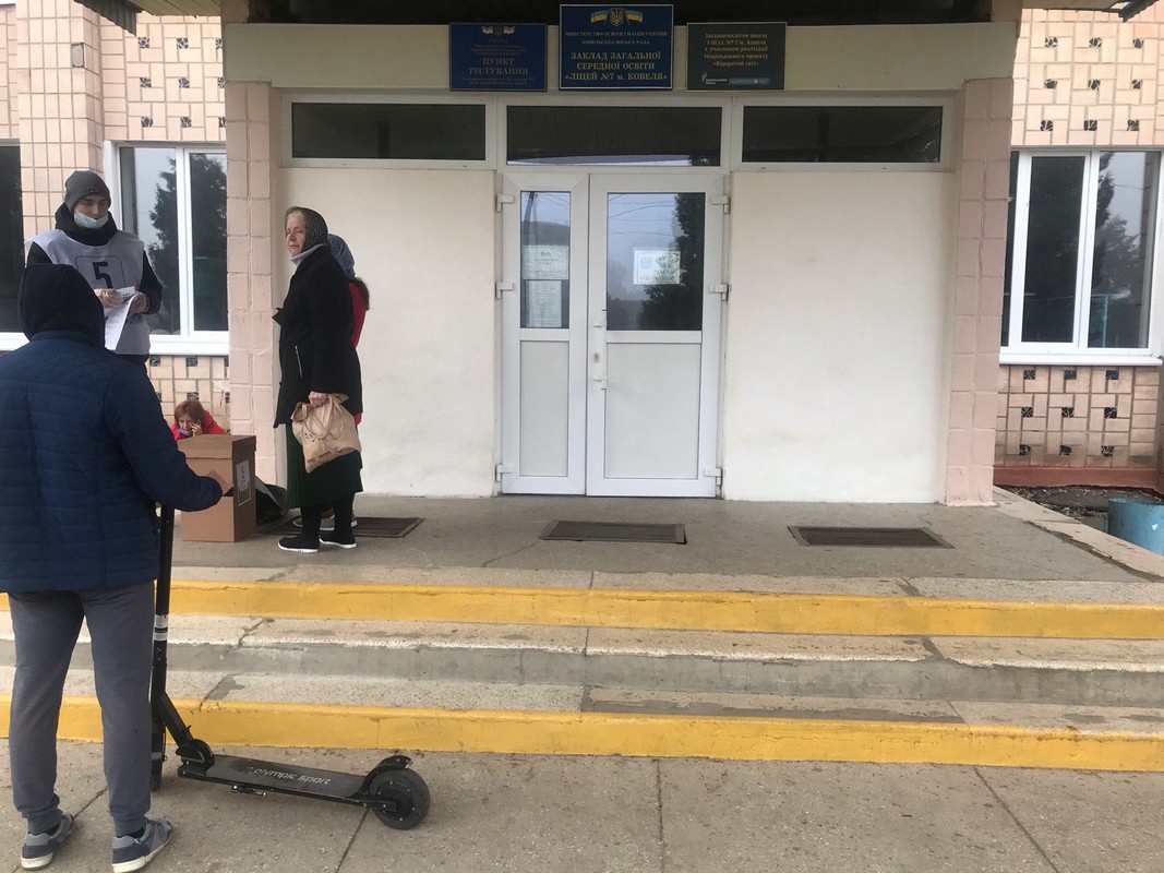 На дільниці №071004 у місті Ковель не вистачає скриньок – на великій дільник містяться 4 стаціонарні скриньки. Окрім того, є кабінки тут розташували притул до гардеробної – таким чином, у них немає суцільної задньої стінки. Також перед входом у приміщення є сходинки однак пандус відсутній.