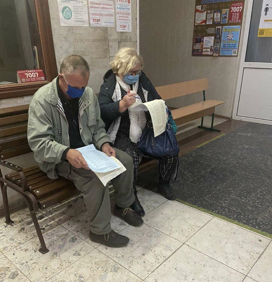 Як повідомляє спостерігачка ОПОРИ, на виборчій дільниці №681444, що в Хмельницькому, виборці заповнювали бюлетені, сидячи на лавочці в приміщенні самої дільниці.