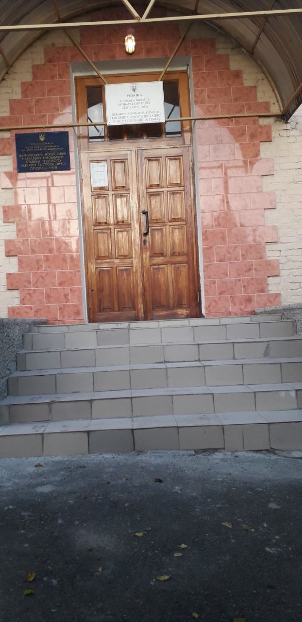Спостерігачі ОПОРИ зафіксували також вхід без пандусів до виборчої дільниці №320001, що у селі Баришівка, на Київщині.