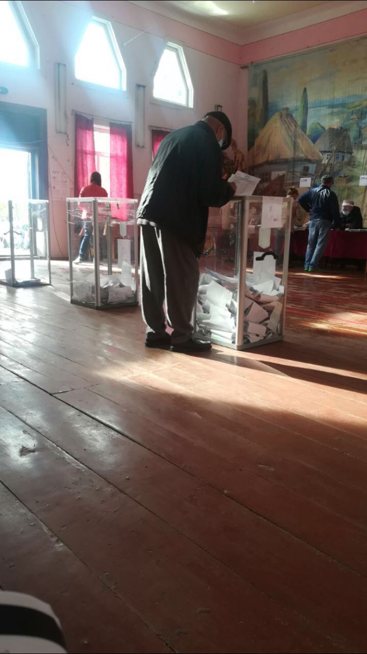 Виборець на дільниці №320813, що у селі Хоцьки, на Київщині, почав голосувати відразу на виборчій скриньці. Опісля зауваження від спостерігача ОПОРИ пішов голосувати до кабінки.