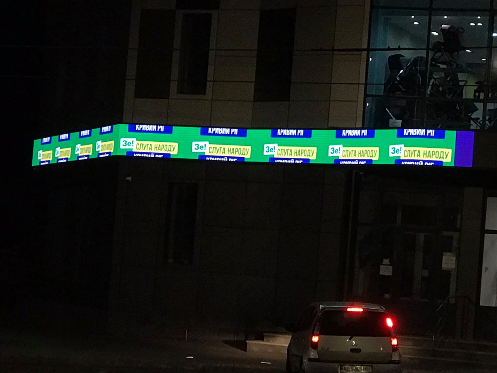 У Кривому Розі, близько 18.00. спостерігач ОПОРИ на офісній будівлі біля зупинки пл. Горького, зафіксував новиннийрядок з написом «Зе! Слуга Народу. Кривий Ріг». В цьому приміщенні розташовується міський штаб партії «Слуга Народу».
