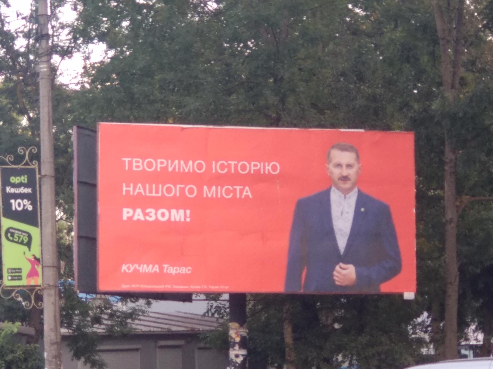 У місті Дрогобич є білборди з гаслом “Не втрать здобуте” і зображенням знаку, який потрібно поставити у бюлетені. Раніше у помаранчевому кольорі у місті були білборди та сітілайти з світлиною чинного міського голови Дрогобича Тараса Кучми (самовисування).