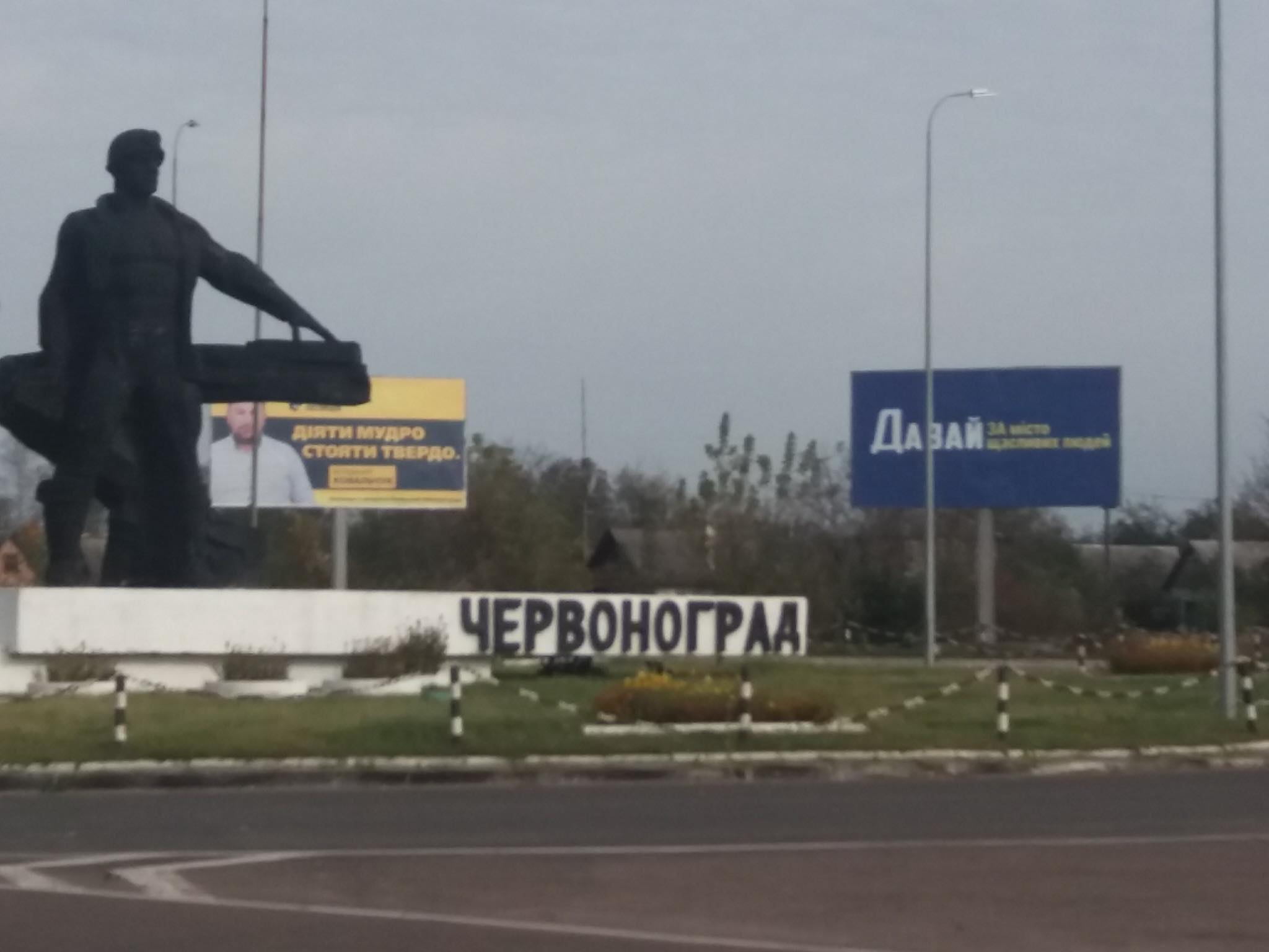 “Давай за місто щасливих людей” - білборди із таким гаслом є у містах Червоноград та Великі Мости. Раніше його на білбордах, листівках, плакатах використовував кандидат на посаду очільника Червоноградської міської територіальної громади Валерій Давидюк (самовисування).
