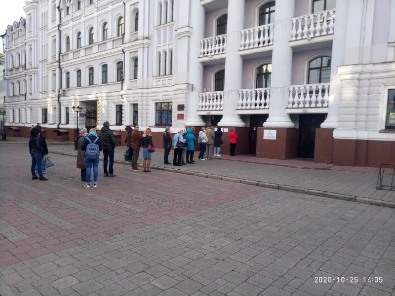 Спостерігачі ОПОРИ зафіксували чергу на виборчі дільниці № 590885 у місті Суми. Ця виборча дільниця розташована за адресою вул. Петропавлівська, 59 і на ній зареєстровано для голосування 2318 виборців.