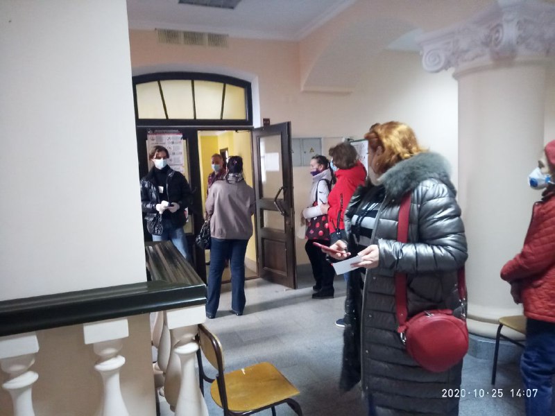 За словами очільника ДВК Миколи Заруцького, «те, що стосується цієї черги, є тому нормальні пояснення. Перше – люди не зовсім розібралися з бюлетенями. Друге – їх (бюлетенів - ОПОРА) дуже багато. Третє – коронавірус. Четверте – є певні рекомендації щодо знаходження певної кількості людей на виборчій дільниці. Сюди не може зайти більше трьох-чотирьох осіб – фізично – і дотримуватись певної дистанції». Відтак Микола Заруцький пояснив, що деякі люди намагаються для економії часу проголосувати не у виборчих кабінках, а на підвіконні, але комісія їм цього не дозволяє.