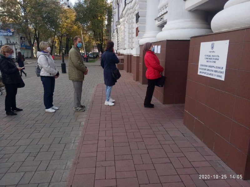Спостерігачі ОПОРИ у зафіксували чергу на одній із виборчих дільниць у Сумах. Також до цього в ОПОРУ звертались виборці, які декілька разів приходили на дільницю, утім через велику чергу вирішили не голосувати. Очільник ДВК переконує, що утворенню черги слугували об’єктивні причини. На інших ДВК міста, де побували спостерігачі ОПОРИ, таких черг не було зафіксовано.