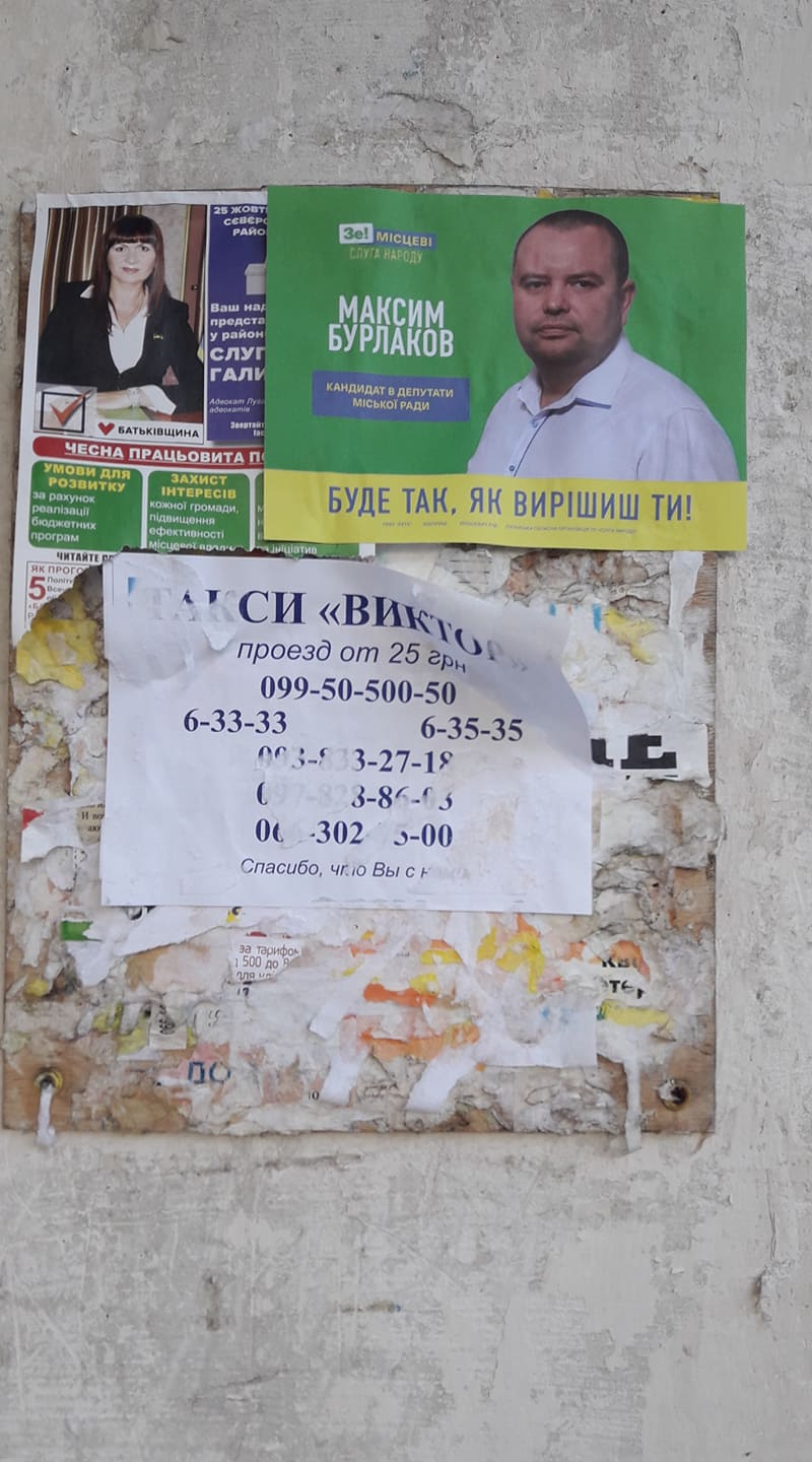 У Рубіжному Луганської області спостерігач ОПОРИ зафіксувала агітаційні матеріали декількох партій у під’їздах житлових будинків, а також на вулицях міста.