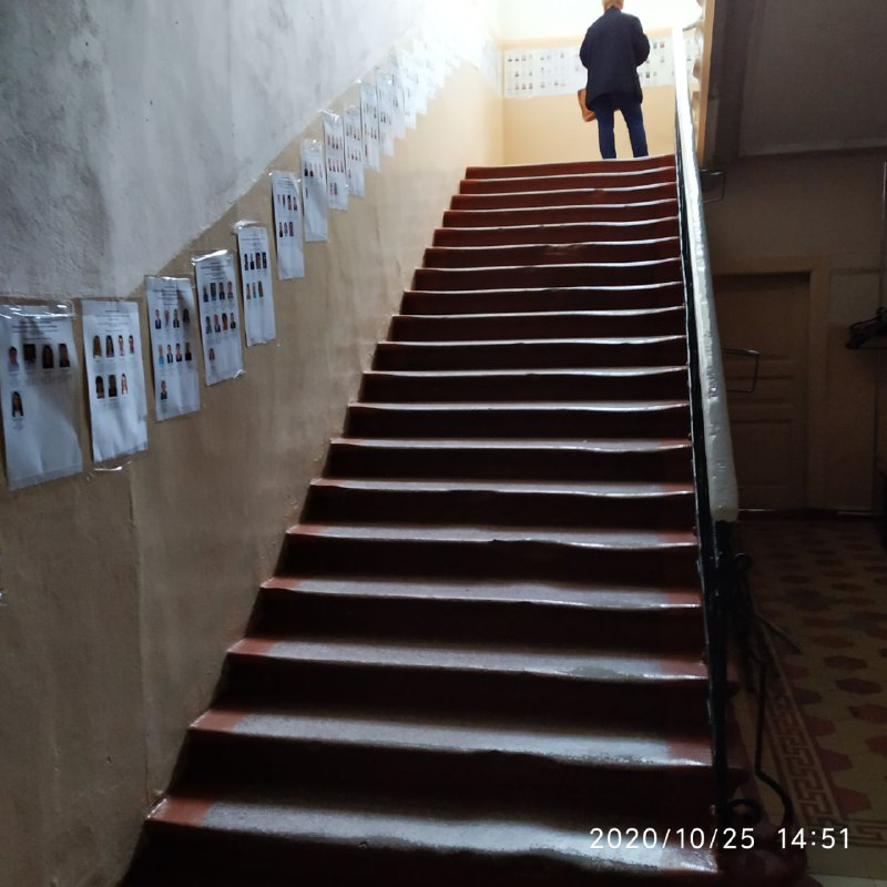 За адресою м. Суми, вул. Заливна, 25 (школа № 29, фойє) зареєстровано чотири виборчих дільниці – 591015, 590930, 590931, 590932. Всі вони є великими – на кожній з них має проголосувати від 1944 до 2232 виборців. Як зафіксували спостерігачі ОПОРИ, дві з цих дільниць розташовано на 2 поверсі, щоб дістатись до нього потрібно подолати кілька десятків сходинок. При цьому у будівлі відсутні як пандуси до 2 поверху, так і ліфт. Варто зауважити, що вхід до школи пандусами обладнаний.