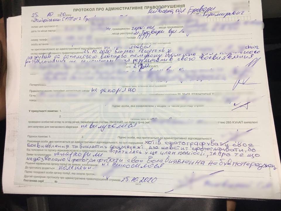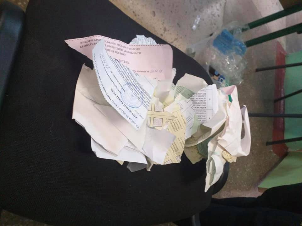 Порвала виборчий бюлетень і постане перед судом. У Броварах на Київщині на одній із виборчих дільниць, жінка, перебуваючи у нетверезому стані порвала бюлетені. На інцидент відреагували поліцейські, які чергували на даній дільниці, спільно із членами дільничної виборчої комісії затримали правопорушницю. На жінку складено адміністративний протокол за ст. 212-23 КУпАП (Пошкодження, приховування, знищення свого виборчого бюлетеня, бюлетеня для голосування на референдумі або винесення його за межі приміщення для голосування).