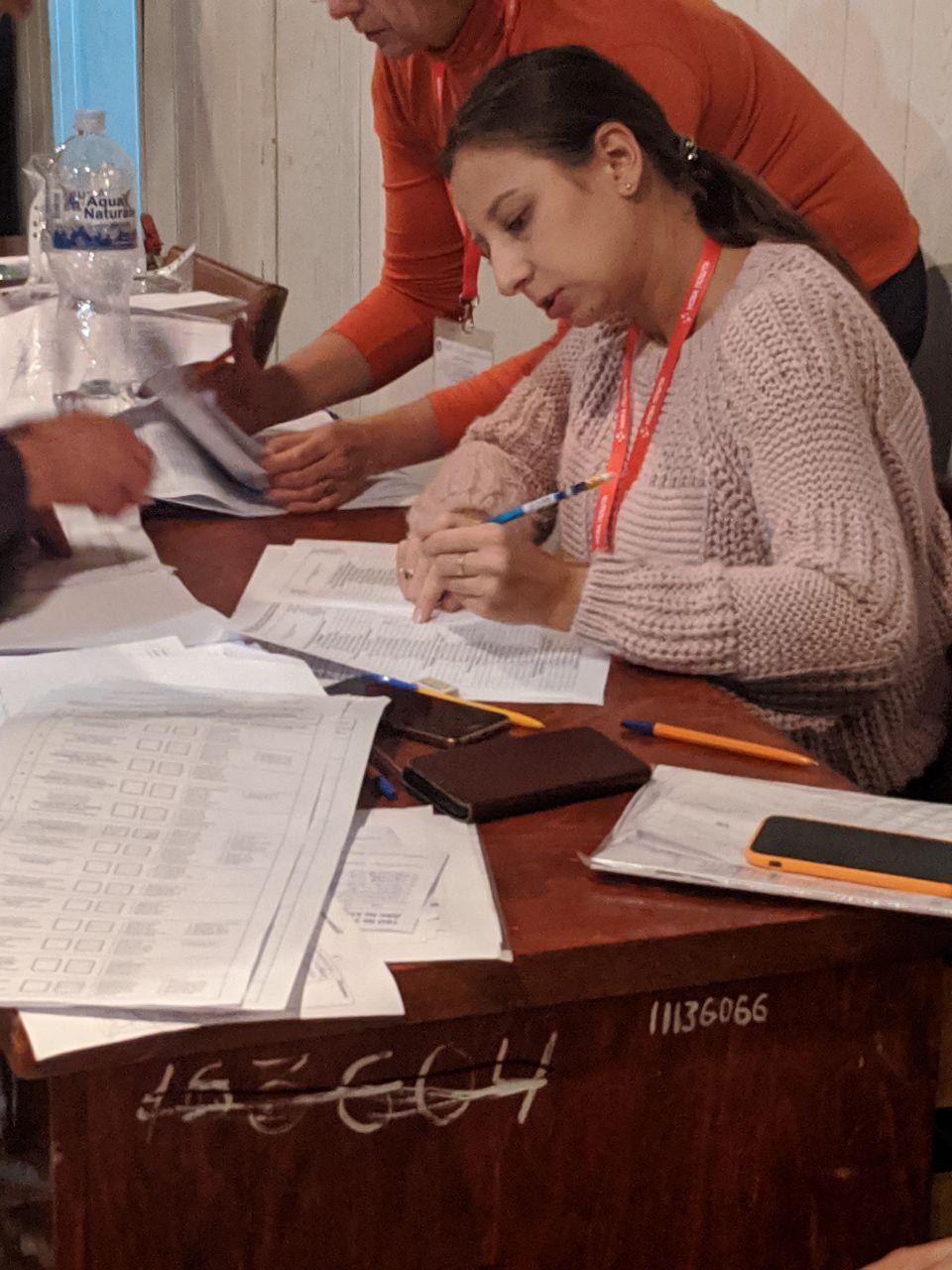 Спостерігачі ОПОРИ зафіксували, як члени ДВК виборчої дільниці № 531192 заповнюють протоколи олівцем. Крім того, окремі члени комісії працюють без захисних масок.