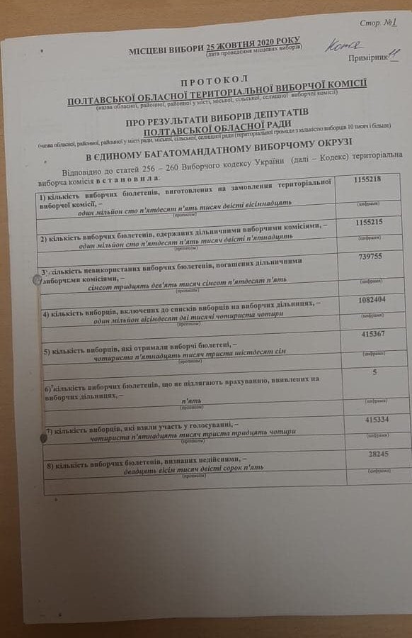 Згідно з даними, оприлюдненими на засіданні Полтавської обласної ТВК, на виборах депутатів облради було віддано 387089 голосів.