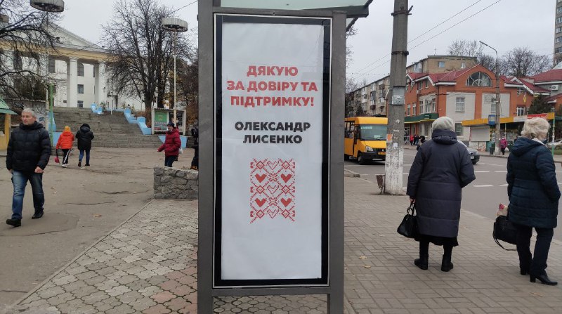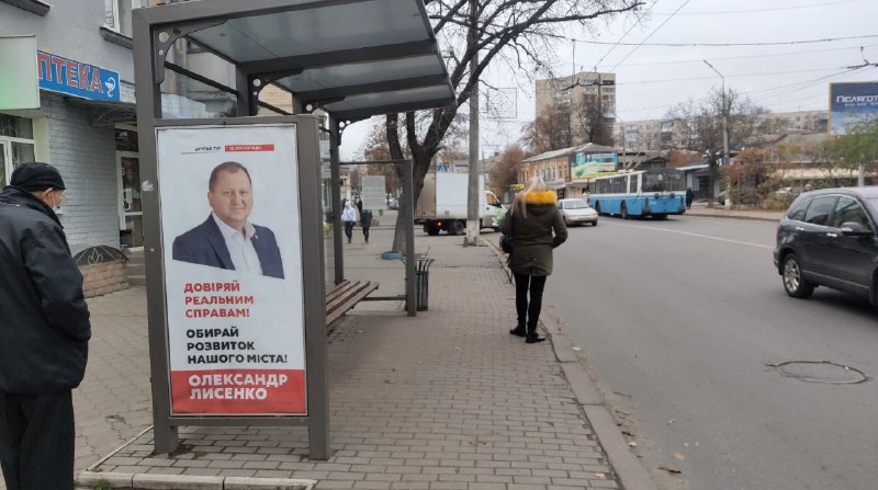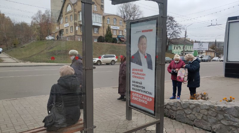 11 листопада 2020 року спостерігачі ОПОРИ зафіксували в Сумах матеріали передвиборної агітації у місцях, які використовуються як зупинки громадського транспорту. Матеріали, в яких зазначається ім’я та прізвище чинного міського голови Сум та кандидата на цю ж посаду, а також подяки від нього ж за підтримку, розміщені у спеціально пристосованих для реклами стінках зупинок. Зокрема, на одному з плакатів зображено фото чинного міського голови та текст «Другий тур 15 листопада. Довіряй реальним справам! Обирай розвиток нашого міста! Олександр Лисенко». На інших плакатах, де не вдалось знайти вихідні дані, написано текст: «Дякую за довіру та підтримку! Олександр Лисенко».