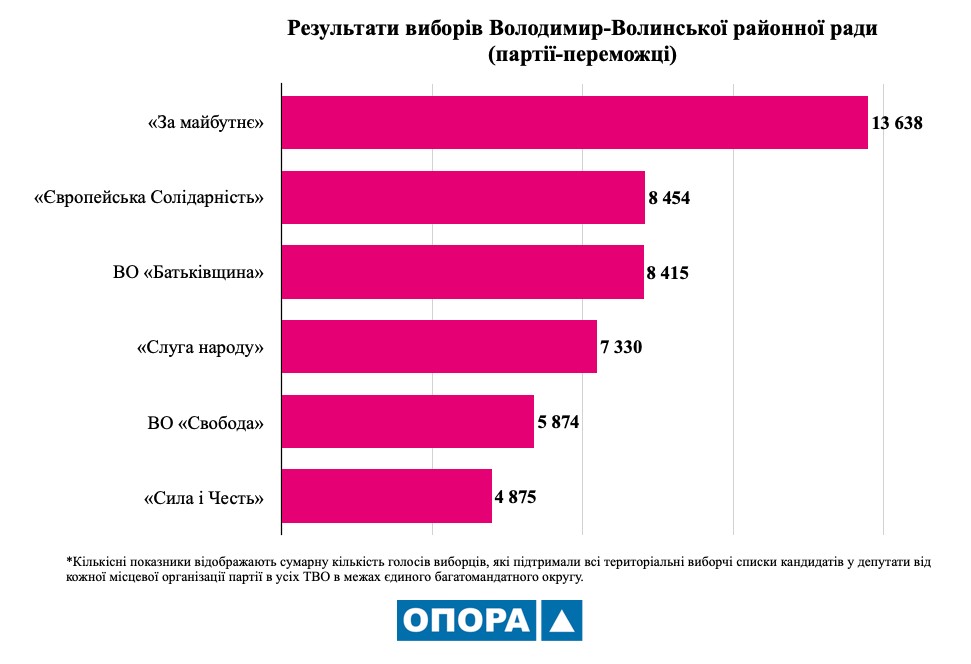 На Волині за результатами голосування 25 жовтня усі політичні сили, які висували кандидатів до складу Володимир-Волинської, Камінь-Каширської, Ковельської та Луцької районних рад, отримали своє представництво у депутатському корпусі. Зокрема, до Камінь-Каширської районної ради потрапили представники 8 політичних партій, до Луцької районної ради – 7 політсил, а у Володимир-Волинської та Ковельської – 6. У кожному із районів найбільшу підтримку здобула партія «За майбутнє».