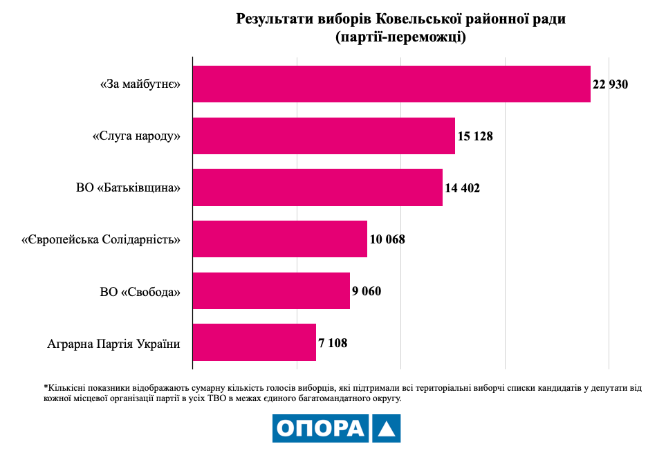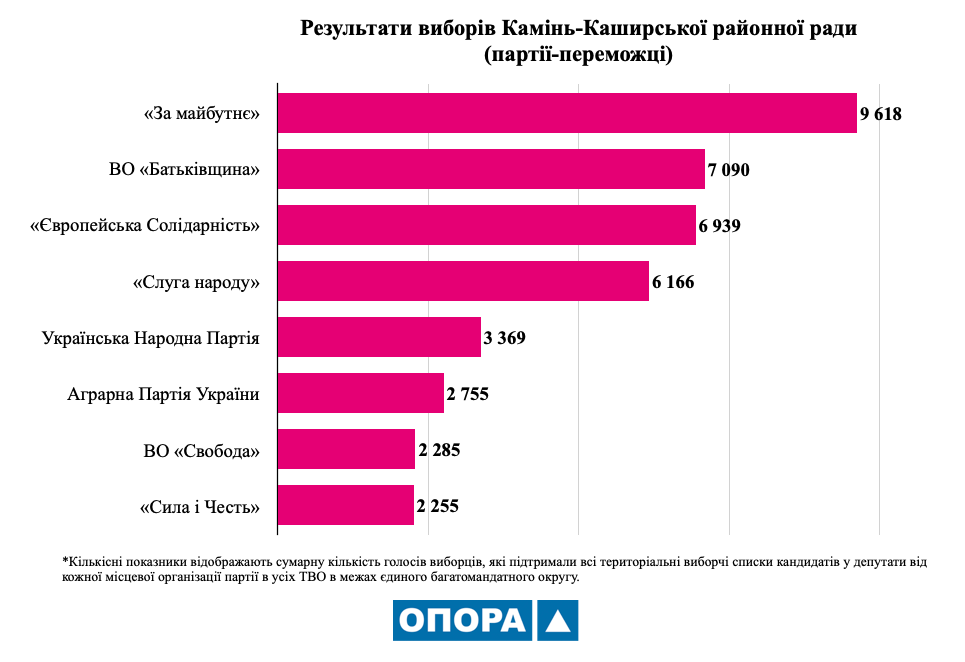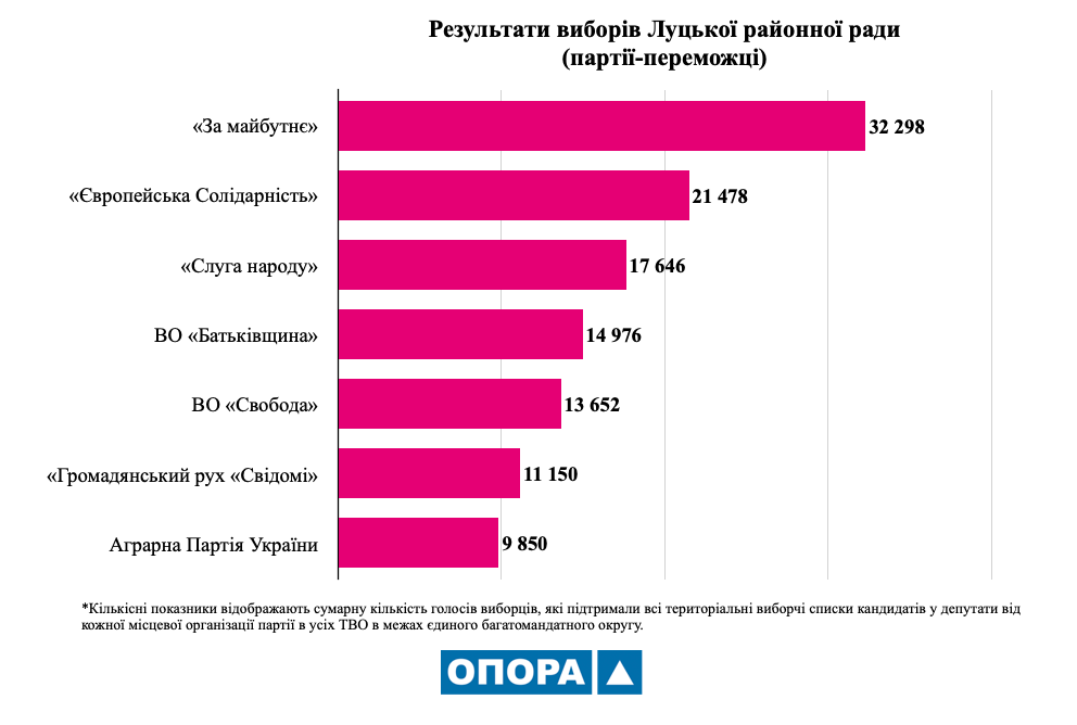 Тож загалом за списки цих партій до районної ради проголосувало 40 тис. 478 осіб. Виборча квота для цих виборів склала 1 тис. 349 осіб.
