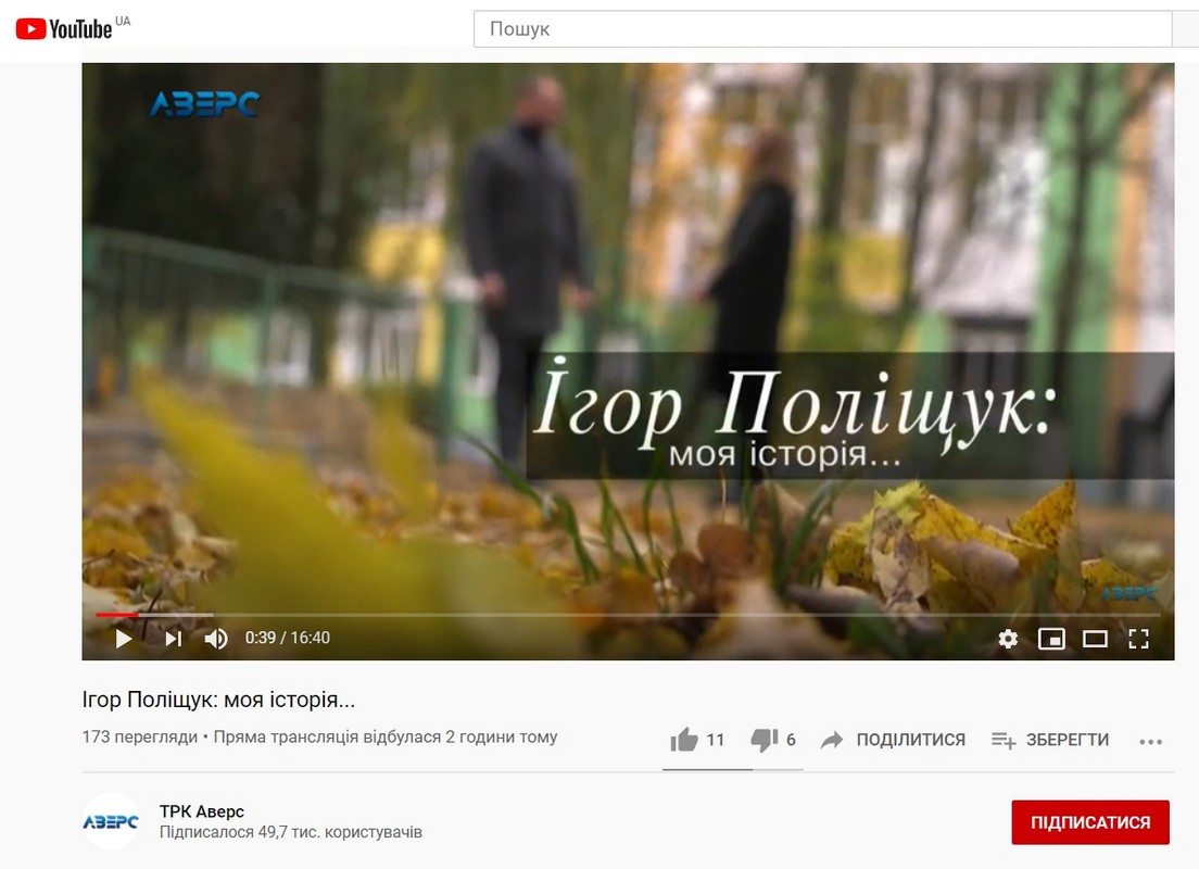 Окрім того, телерадіокомпанія «Аверс» випустила відеоматеріали про кандидата. 5 листопада тут вийшов ролик про те, що Ігоря Поліщука підтримав луцький осередок ВО «Батьківщина». 12 листопада відбулася трансляція ролику «Ігор Поліщук: моя історія», у котрому кандидат розповідає про своє становлення як особистості.