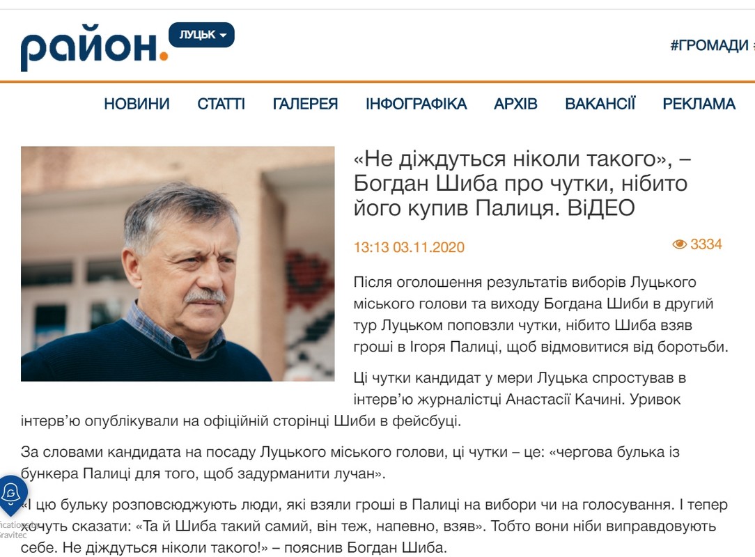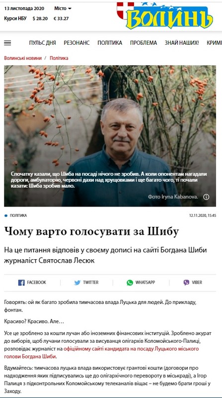 Спостерігачі Громадянської мережі ОПОРА промоніторили волинські онлайн-видання і друковані газети та відшукали матеріали із ознаками реклами на користь обох претендентів на крісло міського голови Луцька, а також низку негативних публікацій стосовно Богдана Шиби.