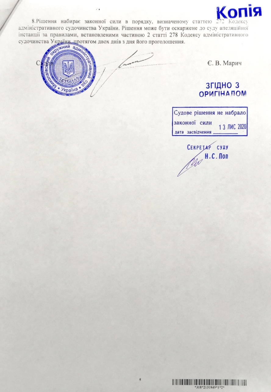 «У цьому випадку порушено право позивача не тільки бути обраним, а й право виборців вільно вибирати. Більше того судом враховано, що кожен виборець має рівні права незалежно від того, скільки голосів отримав його обранець. Тобто кожен голос повинен бути врахований і занесений до відповідних протоколів», − наголосив під час засідання суддя Євген Марич.