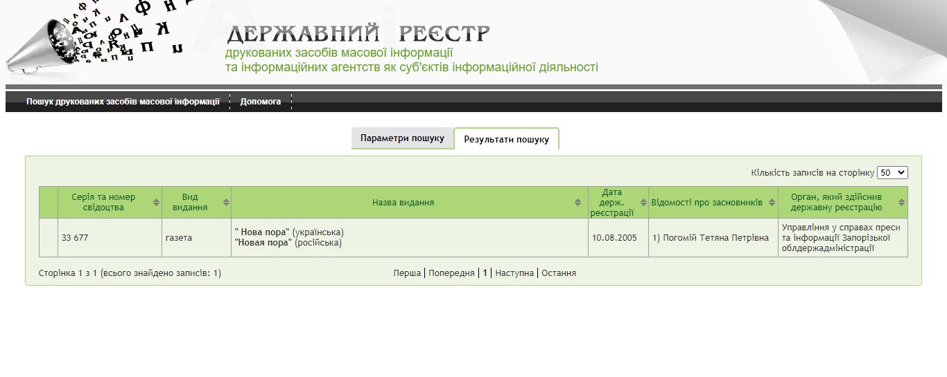 За інформацією з державного реєстру друкованих засобів масової інформації та інформаційних агентств як суб'єктів інформаційної діяльності це медіа зареєстроване у Запорізькій області.
