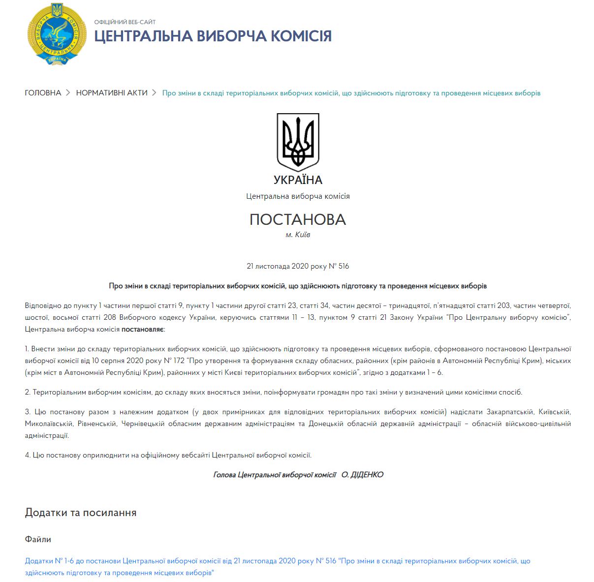 Постановою № 516 від 21 листопада ЦВК провела заміну члена Миколаївської міської ТВК від ВО «Батьківщина» Валерія Дементьєва на Інну Третьякову. Однак на повторному голосуванні остання наразі є головою ДВК №480920.