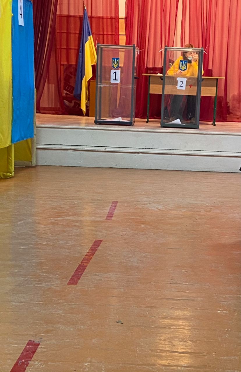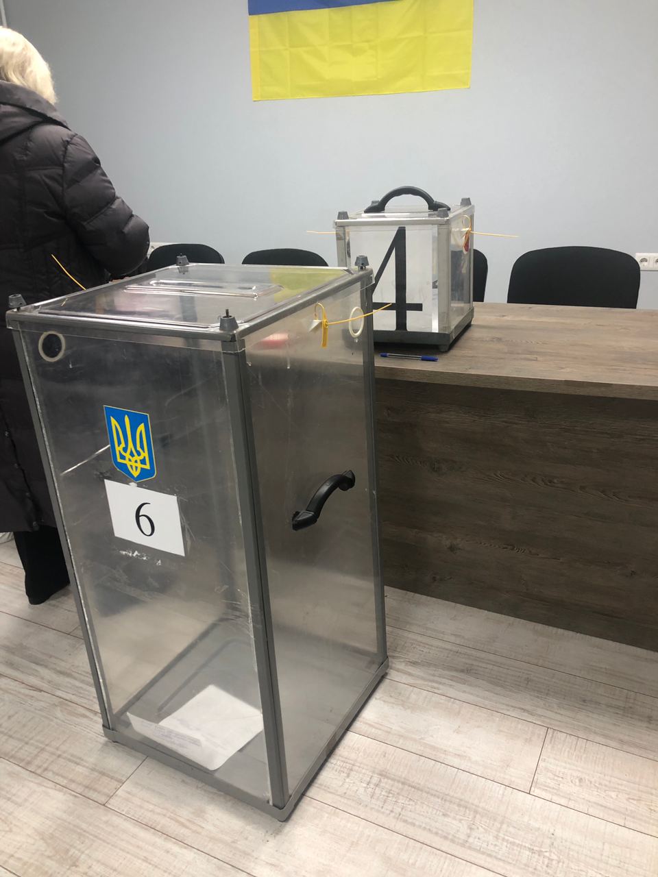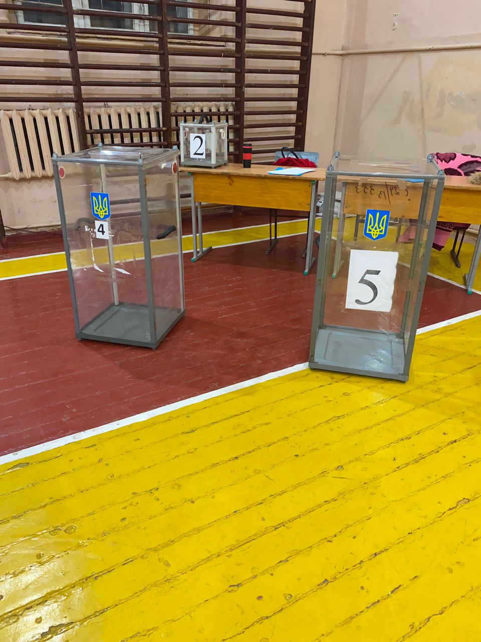 На середній виборчій дільниці № 730493 лише 2 стаціонарні скриньки та 1 переносна. Відсутня скринька та кабіна для людей з ознаками застуди, а також нема окремої кабіни для людей з інвалідністю.
