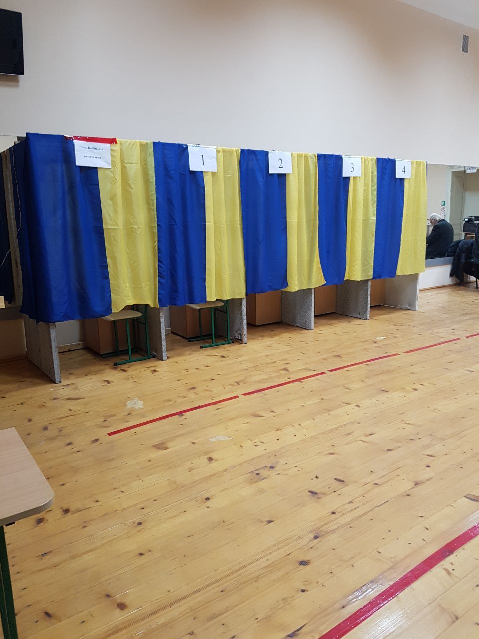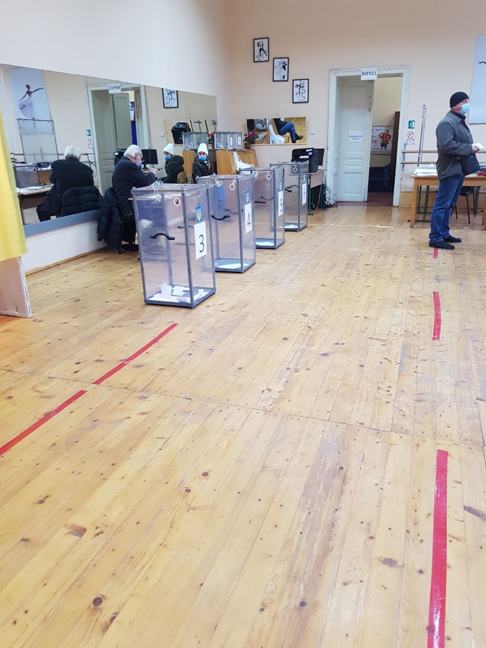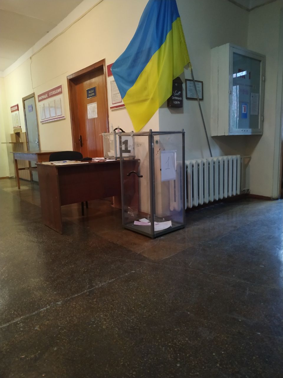На середній виборчій дільниці № 730493 лише 2 стаціонарні скриньки та 1 переносна. Відсутня скринька та кабіна для людей з ознаками застуди, а також нема окремої кабіни для людей з інвалідністю.