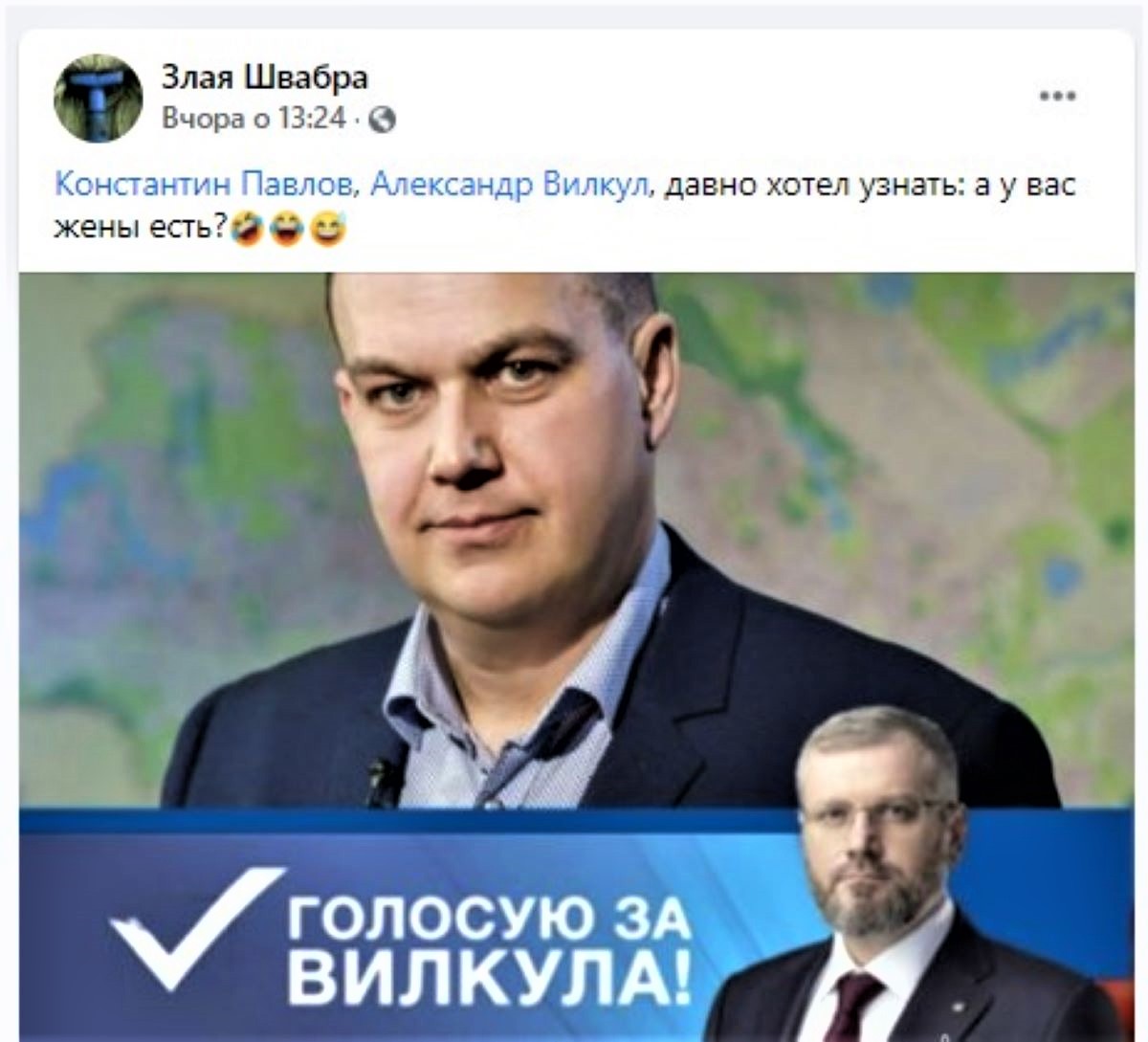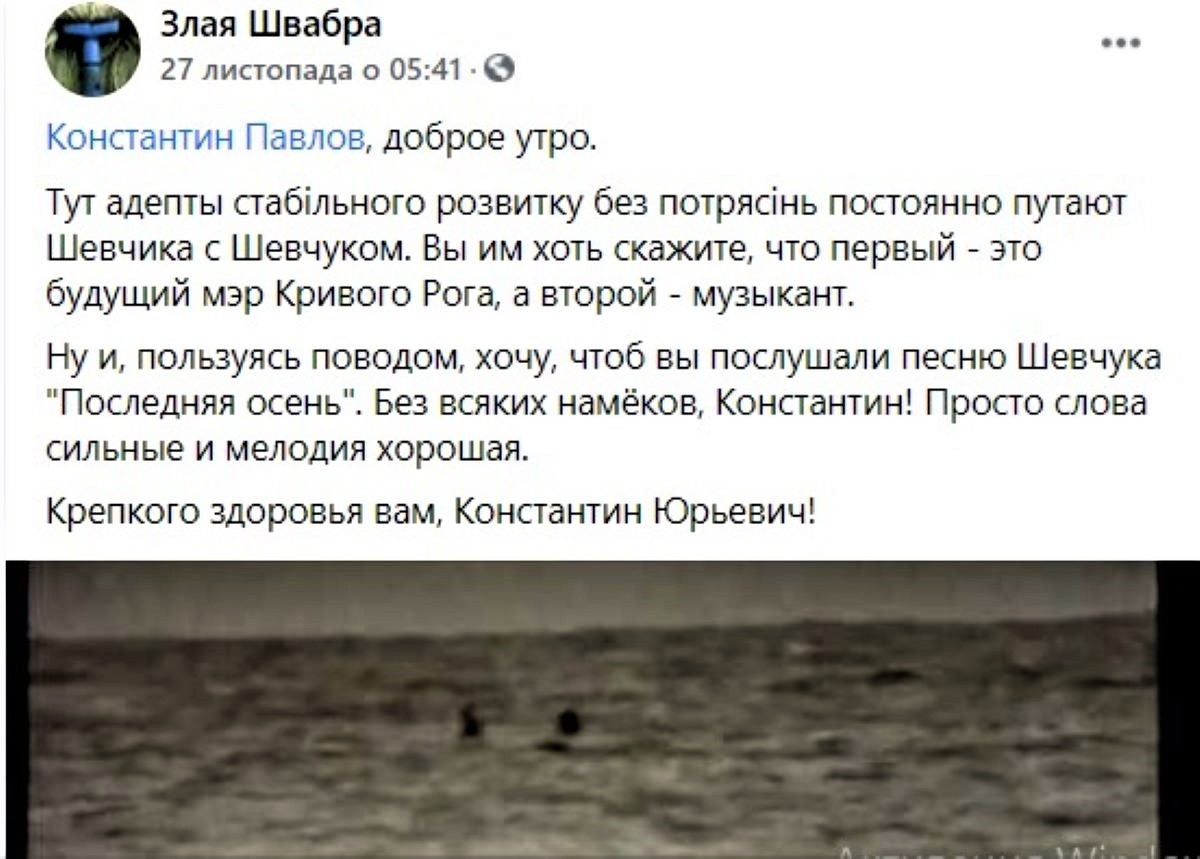Дописувач у фейсбуку під ніком «Зла швабра», починаючи з 17 листопада, (в цей день були озвучені прізвища кандидатів, які пройшли до «другого туру») розпочав публікувати дописи з ознаками чорного піару проти Костянтина Павлова. В дописах не тільки критикуються пункти передвиборчої програми кандидата на посаду міського голови, часто використовуються зневажливі прізвиська, карикатури.