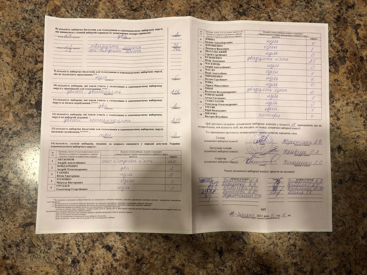 Спостерігач викликав поліцію. Член ДВК Олександр Жукотський в телефонній розмові намагався пояснити, чому комісія ставить у протоколі майбутнє число.
