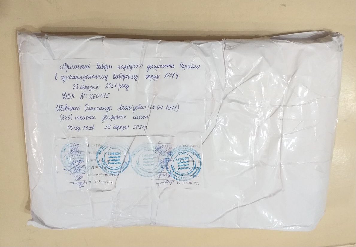 Після затвердження протоколу ОВК проголосувала за добровільну передачу слідчо-оперативній групі пакунок, в якому були початково запаковані бюлетені за Шевченка (1971 р. н.), без бюлетенів для проведення подальших слідчих дій з ним та долучення як доказу.