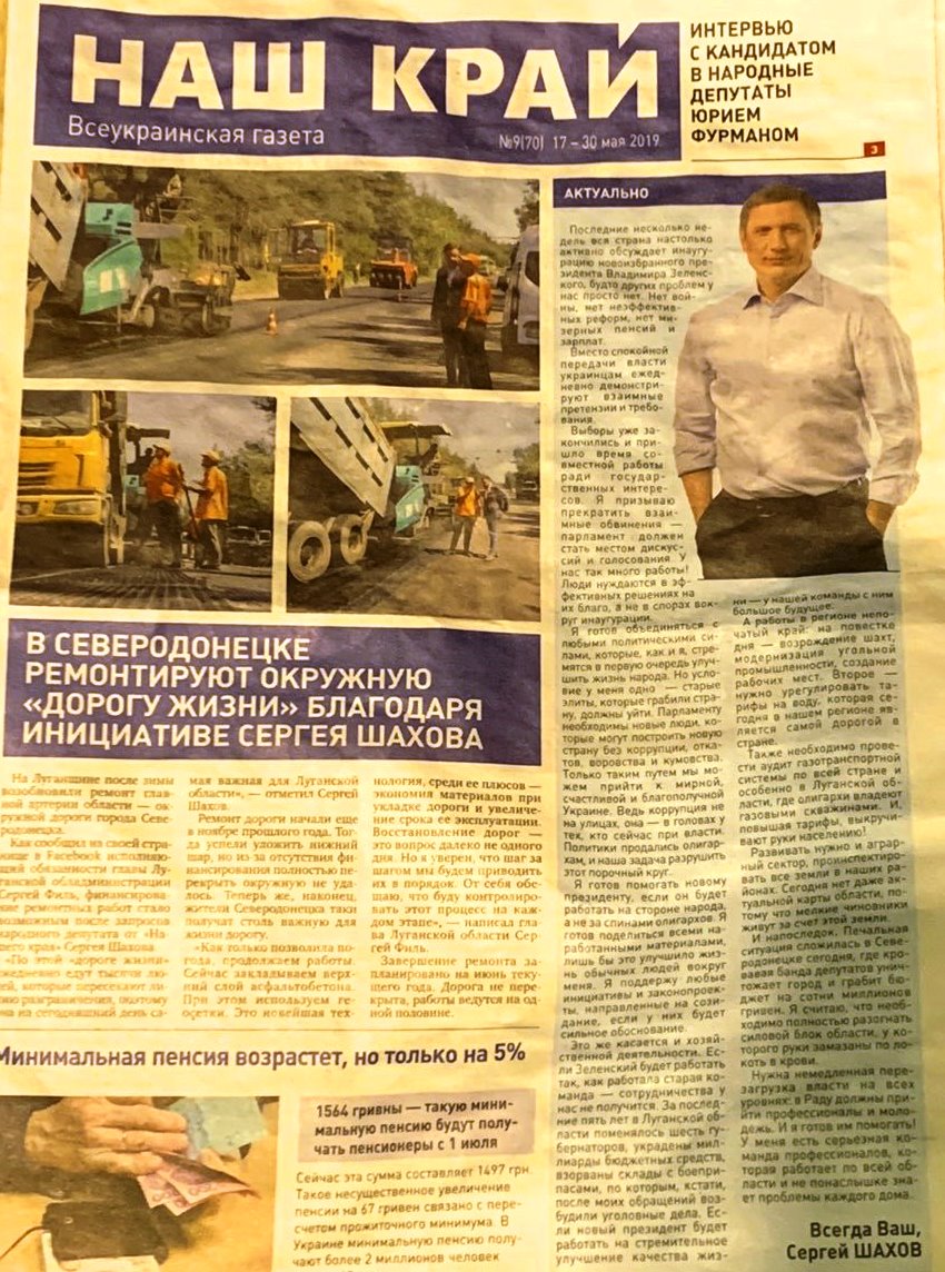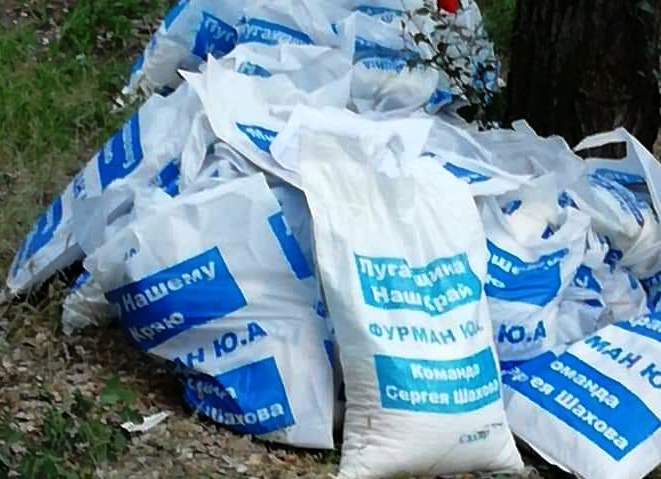 Натомість місцевою особливістю роботи фонду у Рубіжному (112 територіальний виборчий округ) були білі мішки з синіми написами «Луганщина – наш край. Вельможный С.А. Команда Сергея Шахова. Сахар 5 кг», у Лисичанську (107 територіальний виборчий округ) - «Луганщина – наш край. Сухов А.С. Команда Сергея Шахова. Сахар 5 кг», тоді як Сєвєродонецьк відзначився маркуванням «Луганщина – наш край. Фурман Ю.А. Команда Сергея Шахова. Сахар 5 кг».
