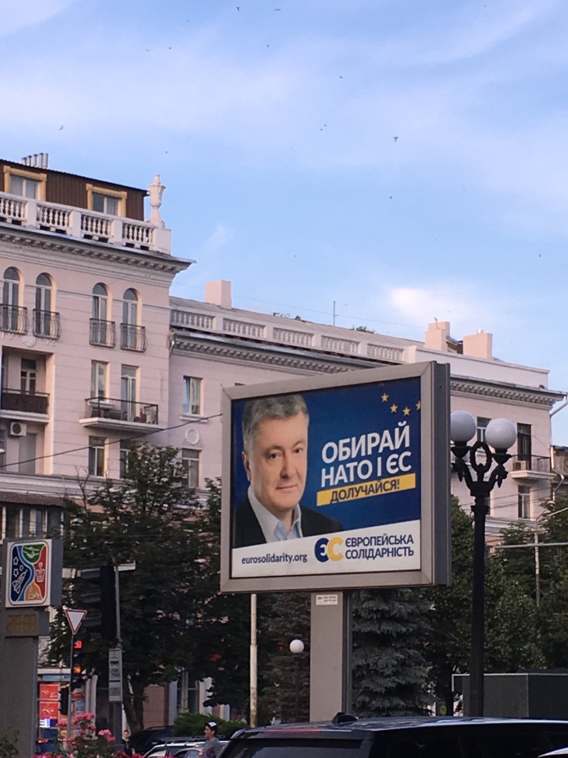 Тим часом у Дніпрі з’явились білборди із зображенням експрезидента України Петра Порошенка та написом «Обирай НАТО та ЄС. Долучайся. Європейська солідарність».