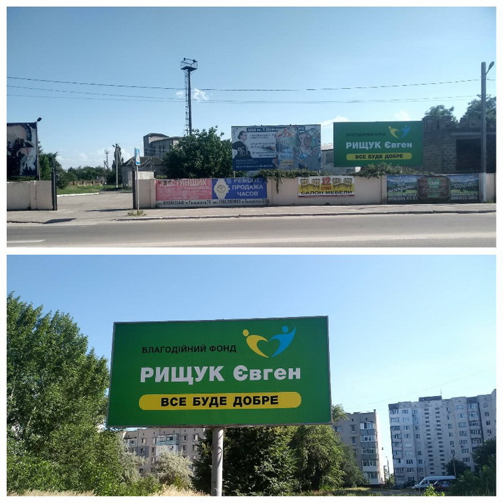 Сам Євген Рищук прокоментував, що це він замінив зіпсовані білборди, додавши, що ці рекламні щити є його власністю. Також політик зазначив, що це не політична реклама, а реклама благодійного фонду.