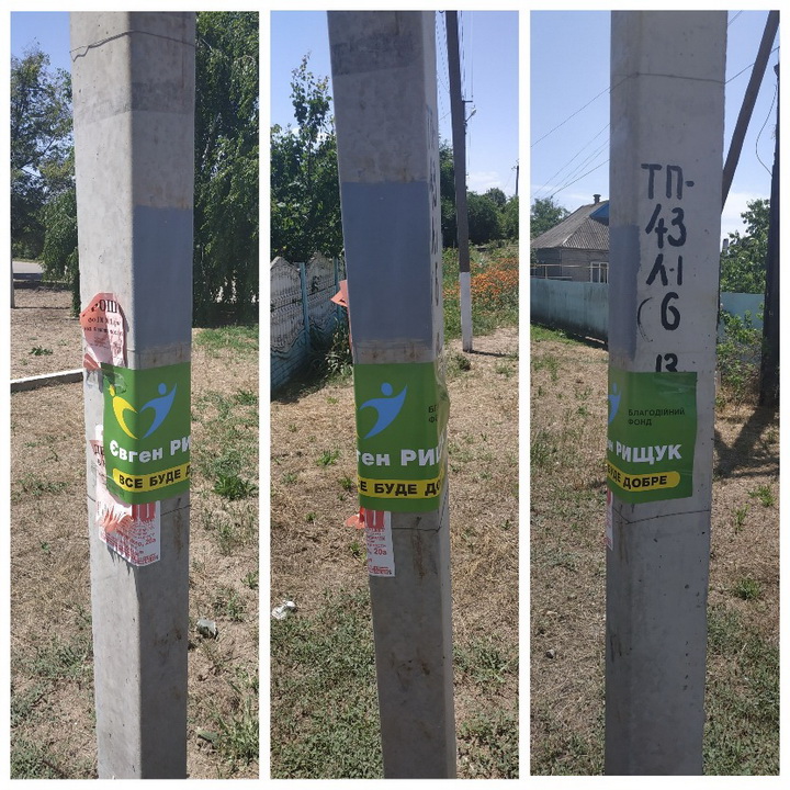 На Херсонщині 6 білбордів потенційного кандидата в народні депутати по 186-му окрузі Євгена Рищука були заляпані червоною фарбою.
