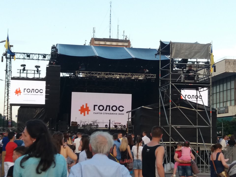 За годину до концерту, який відбувся на площі перед пам’ятником Іванові Франкові, Святослав Вакарчук пропіарив франківцям свою партію та її плани у Верховній Раді. Зауважив, що пішов у політику, бо прагне змін, а основні зміни здійснюються у Верховній Раді. За словами Вакарчука, «Голос» йде у парламент робити справжні зміни. Він додає, що «Голос» - самостійна партія, яка не фінансується олігархами. Політик також представив зі сцени Галину Баранкевич, яку партія «Голос» висунула до участі у парламентських виборах по округу №83 у Івано-Франківську.