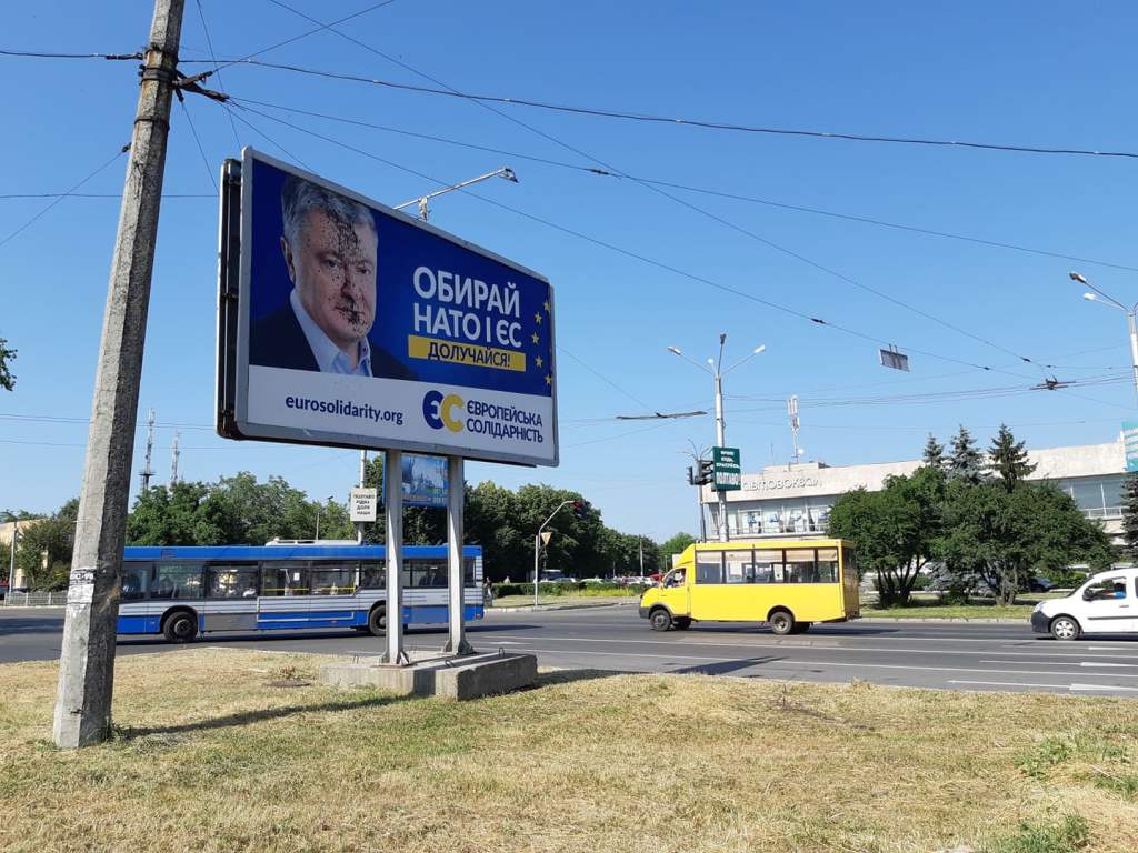 У місту було зафіксовано чотири пошкоджених білборди партії «Європейська солідарність» – два борди на перехресті вулиць Великотирнівська та Ювілейна, по вулиці Сінна та біля центрального автовокзалу.