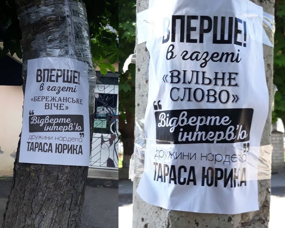 За підрахунками ОПОРИ, найбільш поширені матеріали у газетах одномандатного виборчого округу №165 стосуються Тараса Юрика. Зафіксовано 14 публікацій про нього як народного депутата-мажоритарника, дві - як голову федерації футболу в Тернопільській області та чотири публікації інтерв’ю з його дружиною Мар'яною Юрик.