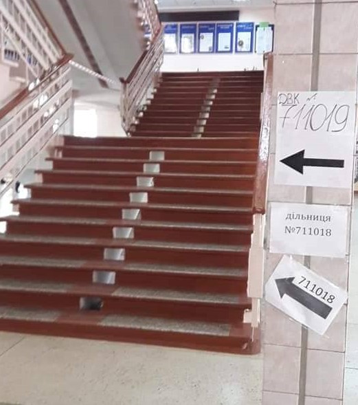 Були перенесені на перший поверх виборчі дільниці з такими номерами: 711012 (вул. Нарбутівська, 206, школа №25), 711018 (вул. .Героїв Дніпра, 27, гімназія №31), 711022 (вул. Героїв Дніпра, 13, школа №33), 711051 і 711052 (вул. ВіталіяВергая, 14/1, школа №26), 711055 (вул. ВіталіяВергая, 14, школа № 30) та 711085 (вул. Бидгощська, 1, школа №24).
