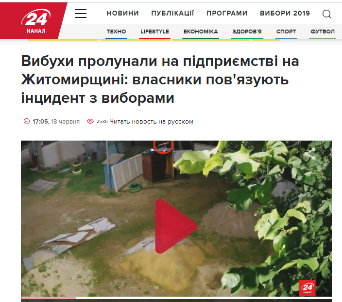 Новина опублікована під заголовком: «Вибухи пролунали на підприємстві на Житомирщині: власники пов'язують інцидент з виборами».