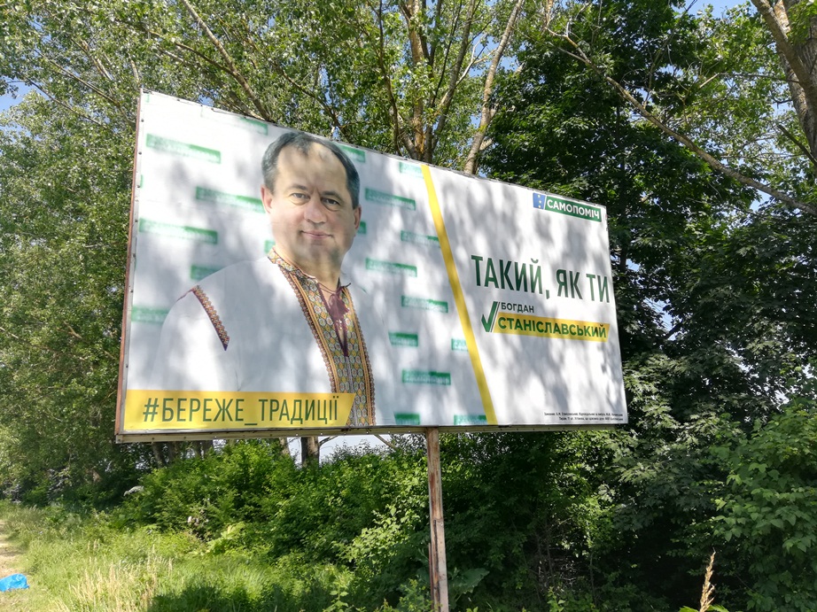 16 червня спостерігачі ОПОРИ зафіксували у Тисмениці, що в окрузі №84, білборди кандидата у депутати Богдана Станіславського, розміщені ймовірно не за кошти виборчого фонду. Богдан Станіславський – висуванець від політичної партії «Об’єднання «Самопоміч». На білбордах із зображенням кандидата та написом «Такий як ти. Богдан Станіславський. Береже традиції» були необхідні вихідні дані: відомості про замовника друкованих передвиборних агітаційних матеріалів, установу, яка здійснила друк, тираж, інформацію про осіб, відповідальних за випуск, що відповідає ч. 23 ст. 74 Закону України «Про вибори народних депутатів України».