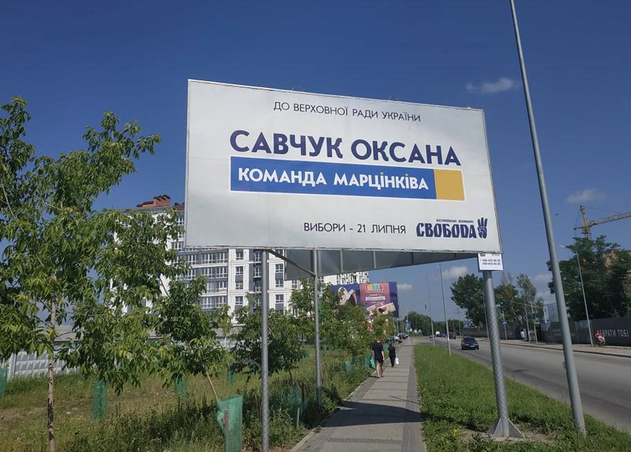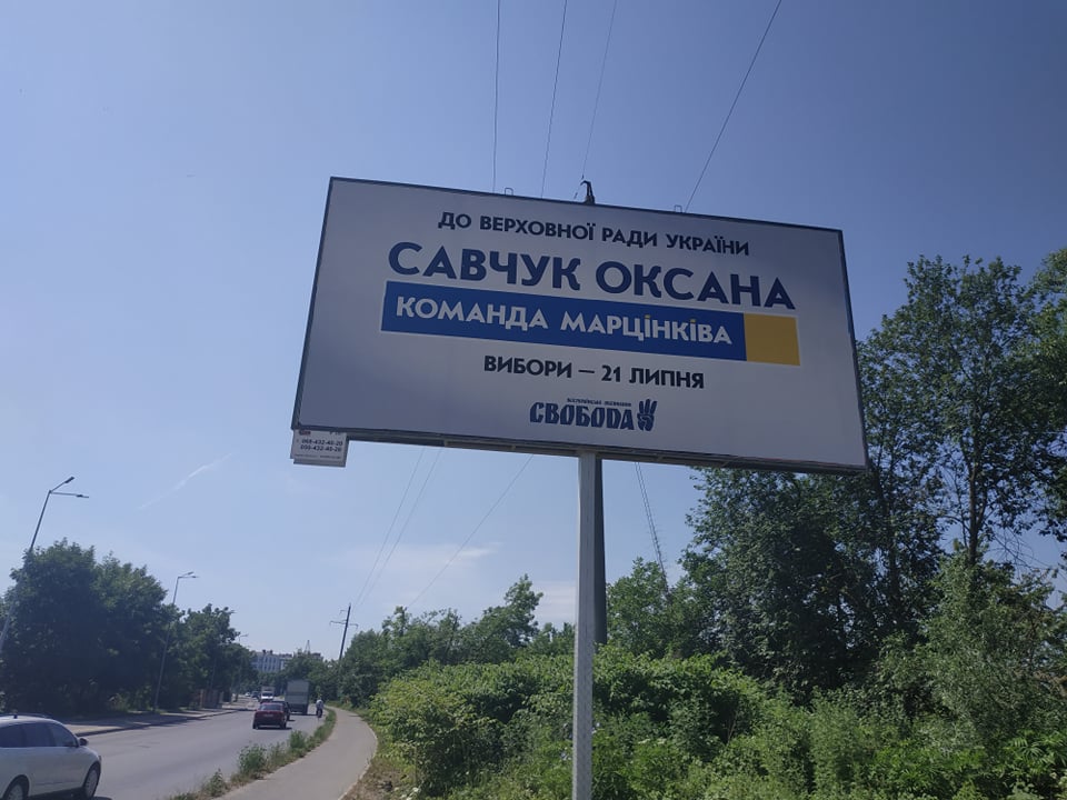 Також 19 червня спільно з патрульними спостерігачі ОПОРИ виявили в Івано-Франківську (виборчий округ № 83) 20 білбордів та 2 сітілайти з агітацією за кандидатку Оксану Савчук (політична партія Всеукраїнське об’єднання «Свобода») розміщені із ймовірними порушеннями виборчого законодавства. Йдеться про білборди із написом «Савчук Оксана. Команада Марцінківа. Вибори до Верховної Ради України 21 липня». «Оскільки Оксану Савчук ЦВК зареєструвала кандидаткою по округу №83 (Івано-Франківськ) 18 червня, у спостерігачів ОПОРИ є сумнів, що він розміщений за кошти виборчого фонду, адже про створення такого фонду станом на 19 червня ОПОРІ невідомо», ‑ зауважив координатор.