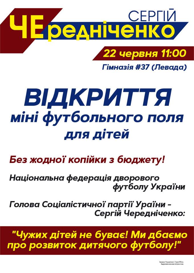 Чередніченко 22 червня прийняв участь у відкритті міні футбольного поля для дітей за участі Іллі Киви.