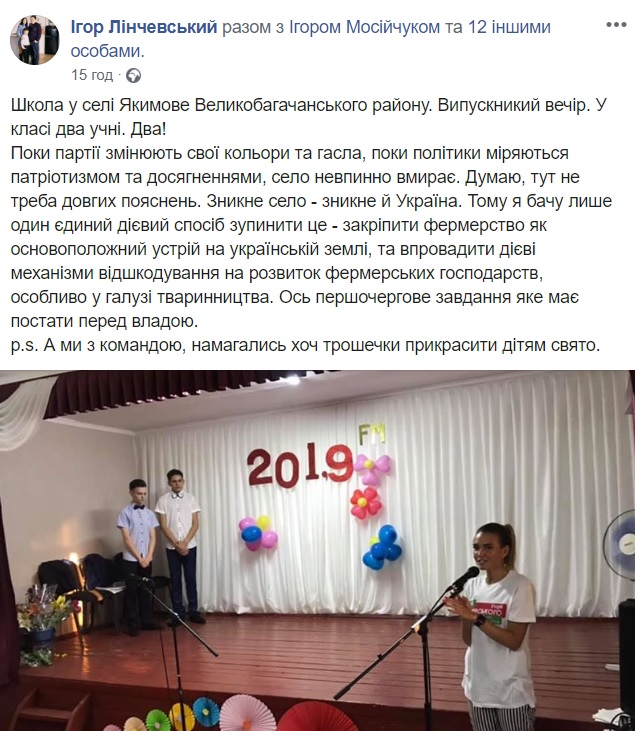 Крім цього він допоміг в організації випускних для шкіл Великобагачанського району.