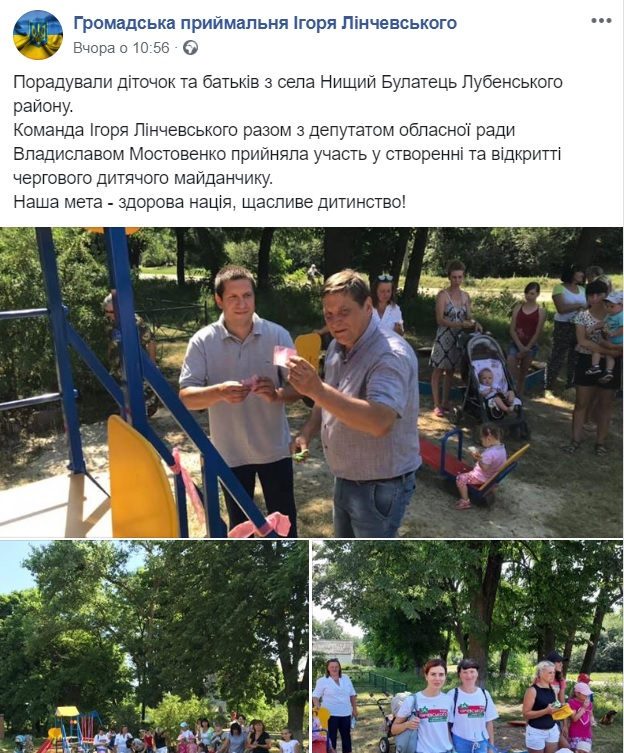 Також Лінчевський в селі Нищий Булатець Лубенського району відкрив дитячий майданчик.