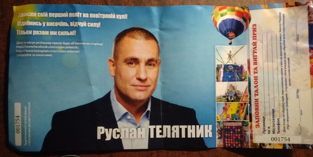 Також активність виявляє потенційний кандидат Руслан Телятник. Його агітаційні стенди з написом «За підтримки Руслана Телятника» були розміщені під час святкування дня міста в Кобеляках 22 червня. Поблизу них «агітатори» розповсюджували флаєри для участі у розіграші польоту на повітряній кулі.