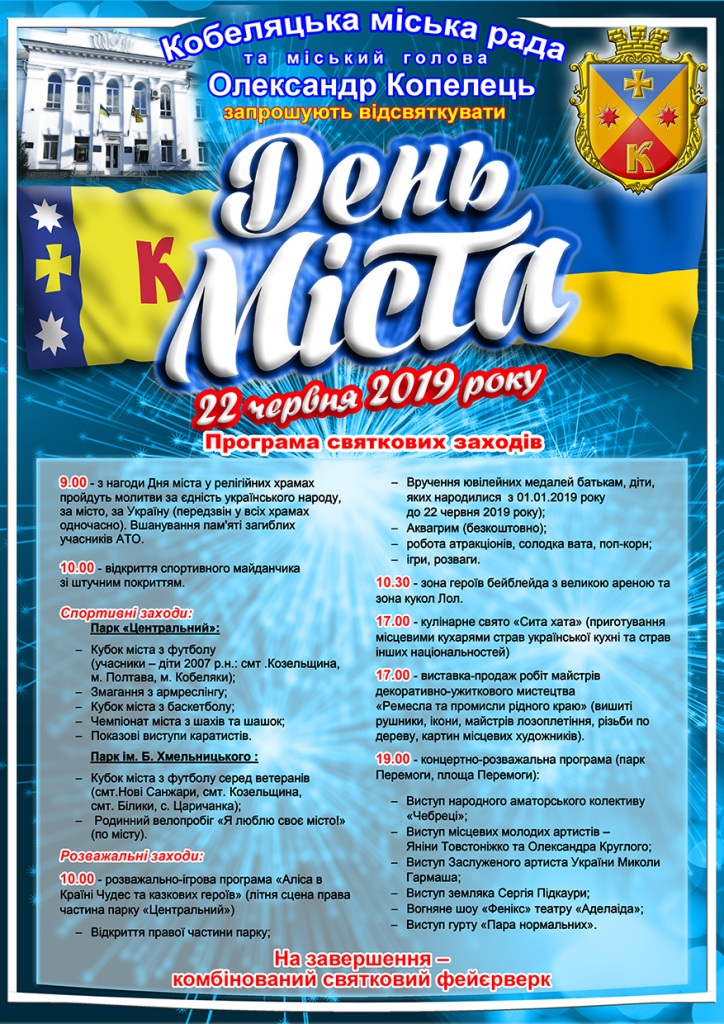 Близько 19 години в центральному парку відбувся святковий концерт до дня міста Кобеляк, який організувала місцева міська рада.