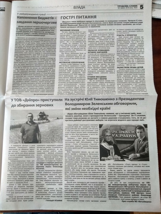 Щодо контенту, то він суттєво різнився. Так, матеріали щодо «Батьківщини» більше фокусувались на підкресленні контактів та взаємодії між лідеркою Юлією Тимошенко та новообраним Президентом Володимиром Зеленським (наприклад, статті «На зустрічі Юлії Тимошенко з Президентом Володимиром Зеленським обговорили, які зміни необхідні країні», «Об’єднання Тимошенко та Зеленського це спусковий скачок змін»).
