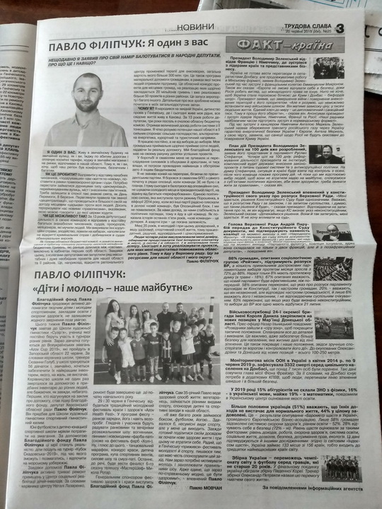 Відносно тематики і підходів до підготовлених матеріалів, то вони достатньо типові – фокус на соціально-економічних проблемах (наприклад, матеріали «Діти та молодь – наше майбутнє. Павло Філіпчук», «Ініціатива Ігоря Колихаєва – юридична допомога має бути доступніше», «Вегандз Мясникян: безкоштовна діагностика – має бути») та презентації себе (статті «Павло Філіпчук: Я один з вас», «Выбор – 2019: Украина нуждается в молодых перспективных политиках. Игорь Семенчев»).
