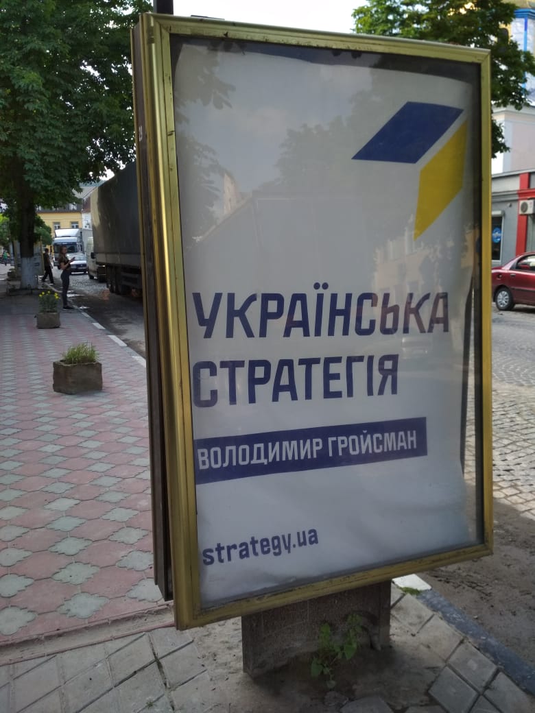 На сітілайтах у місті Теребовлі була розміщена реклама із символікою політичної партії «Українська стратегія Гройсмана» і підписом «Українська стратегія. Володимир Гройсман. Strategy.ua». Друкована продукції не мала вихідних даних.