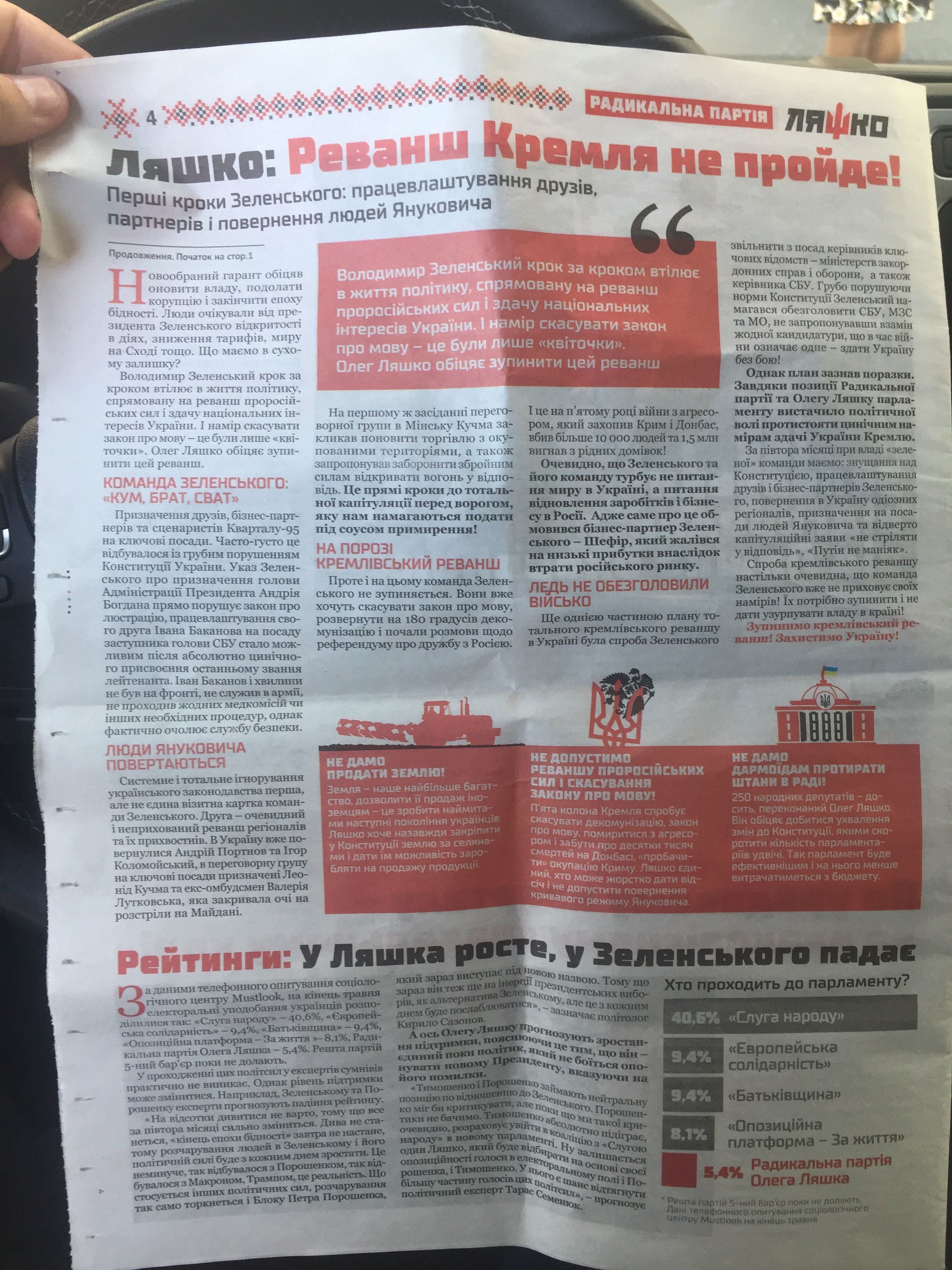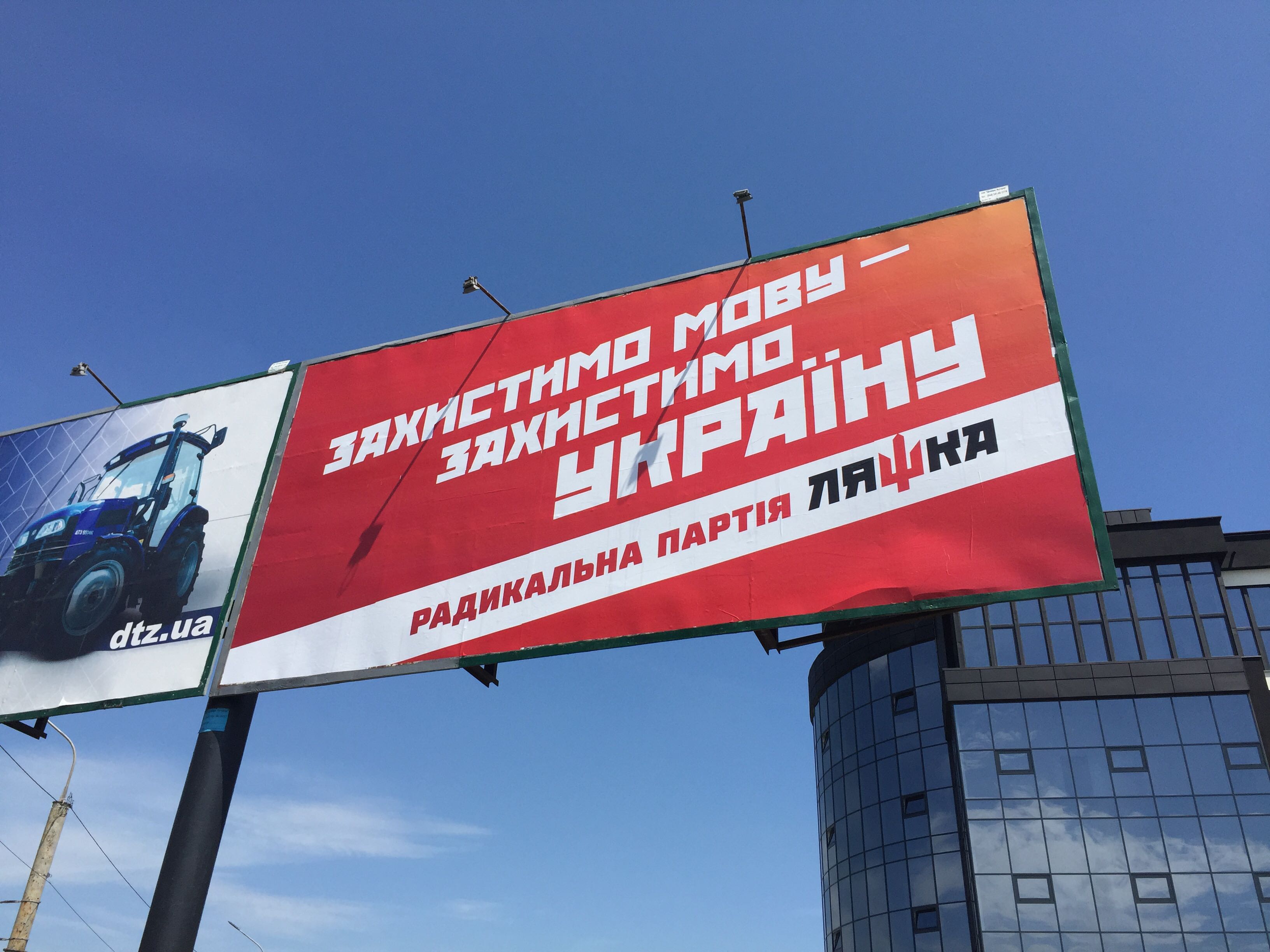 Під час нього на Збаразькому круговому перехресті у місті Тернополі вони зафіксували білборд Радикальної партії Олега Ляшка із написом «Захистимо мову – захистимо Україну. Радикальна партія Ляшка».